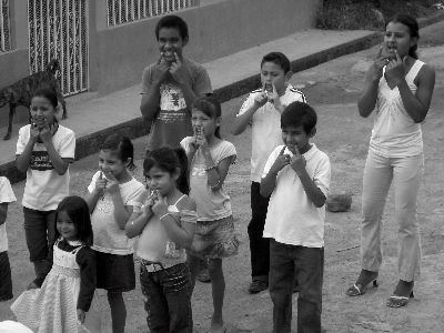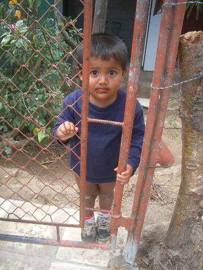 Kids playing a game in the street in front of our house. Carlos Alfredo is the older boy in the photo and he is always very interested in our visitors from other countries. He communicates with them using sharades, broken English and lots of smiles.